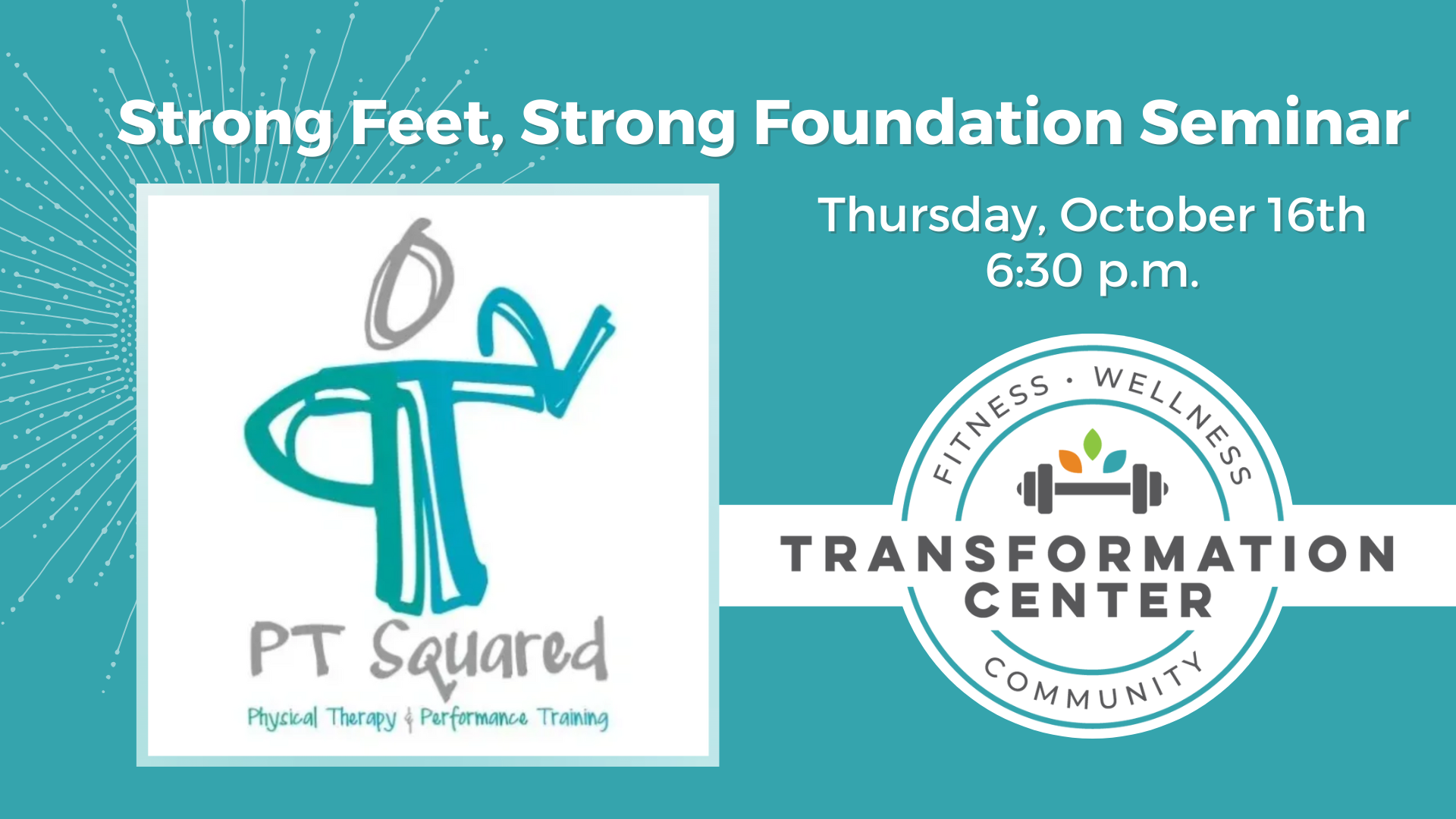 Join Melissa Roswold, physical therapist with 20+ years of experience, at the TC on Thursday, October 16th at 6:30 for an interactive session that helps you build strength and stability from the ground up—starting with your feet!